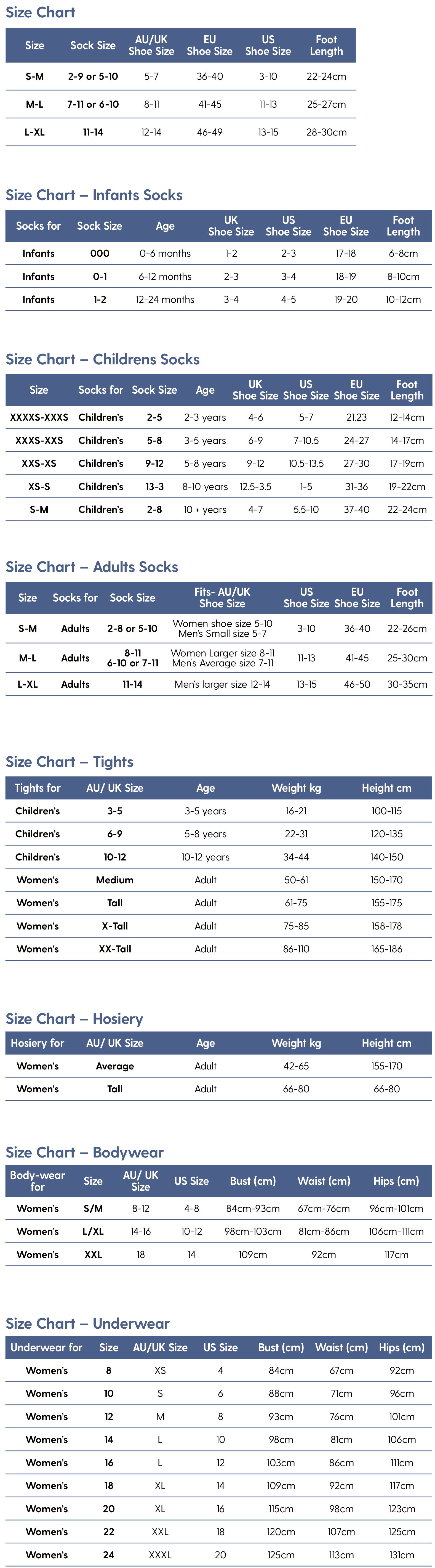 Size Charts
